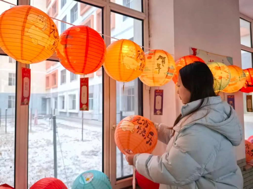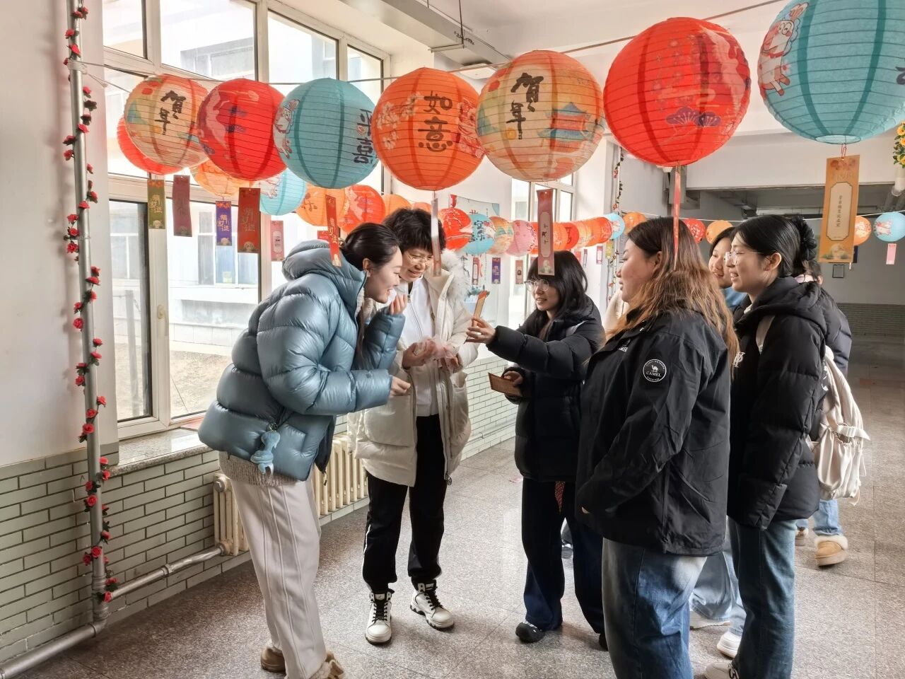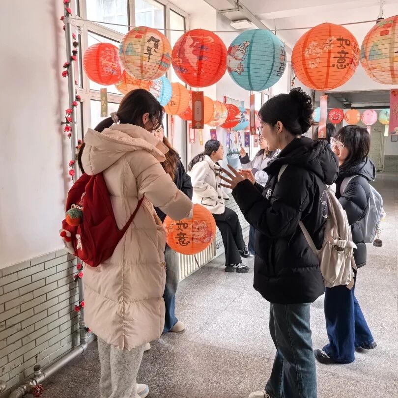 猜灯谜:活动现场布置得喜庆温馨,五彩灯笼整齐悬挂,灯谜纸条随风飘动,节日氛围十分浓厚。猜灯谜环节吸引了众多师生踊跃参与,老师们也积极参与其中,与同学们一同猜灯谜、共同交流。灯谜涵盖民俗文化、趣味字谜等多个类别,兼具知识性与趣味性。现场师生互动热烈,大家一同思考、共同探讨,在欢声笑语中感受传统民俗的独特魅力。
